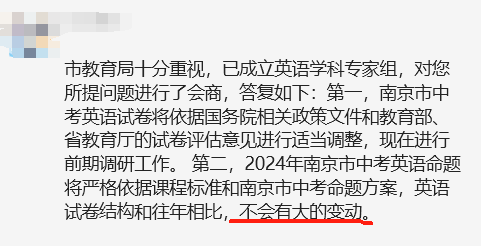詳情請(qǐng)戳>>2024南京中考英語(yǔ)改革?官方回應(yīng)來(lái)了!